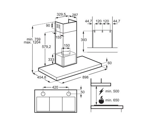 - Dimensions (mm) (HxWxD): 1204x898x455