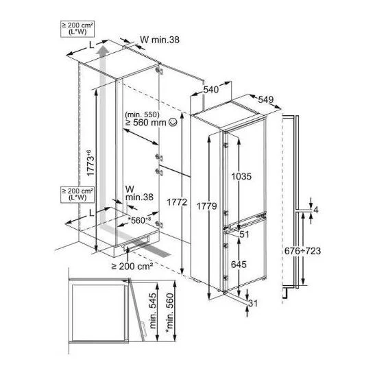 - Built-in Dimensions (mm) (HxWxD): 1780x560x550
