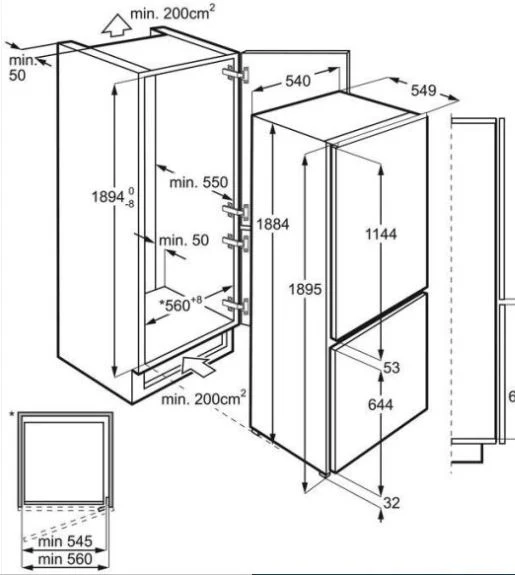 - Built-in Dimensions (mm) (HxWxD): 1894x560x550