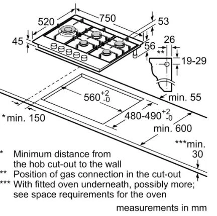 Neff T27DS79N0 75cm 5 Burner FlameSelect Gas Hob STAINLESS STEEL