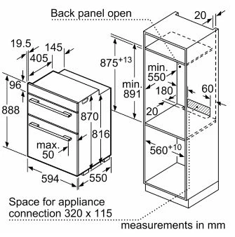 - Top oven: Capacity 34 litres, 4 Cooking functions: Top/bottom heat, Full surface grill, Small area grill, Bottom heat, Conventional, full width grill, Interior light