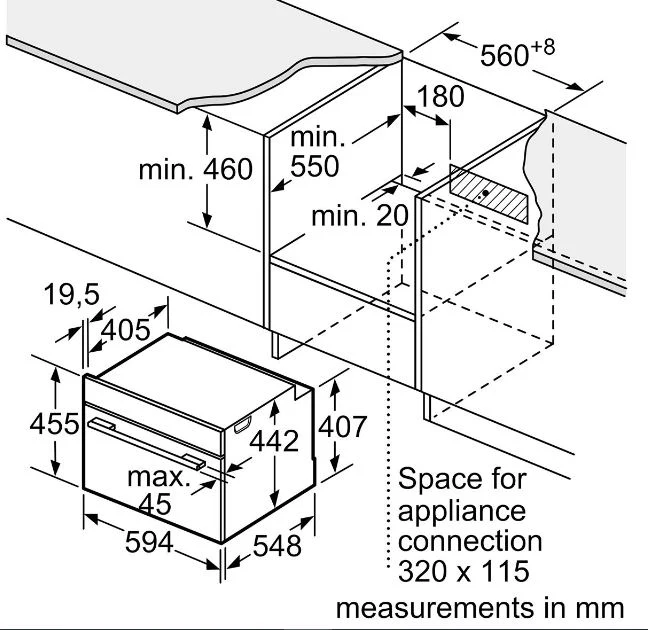 - (H)455 x (W)594 x (D)548mm